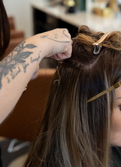 We are BELLAMI Certified! Bellami extensions are a popular brand of hair extensions known for their high-quality, 100% Remy human hair. Bellami offers a range of extension types, including clip-ins, tape-ins, and sew-ins, catering to various needs and preferences. Their extensions come in a wide variety of colors, lengths, and textures, ready to transform your look!